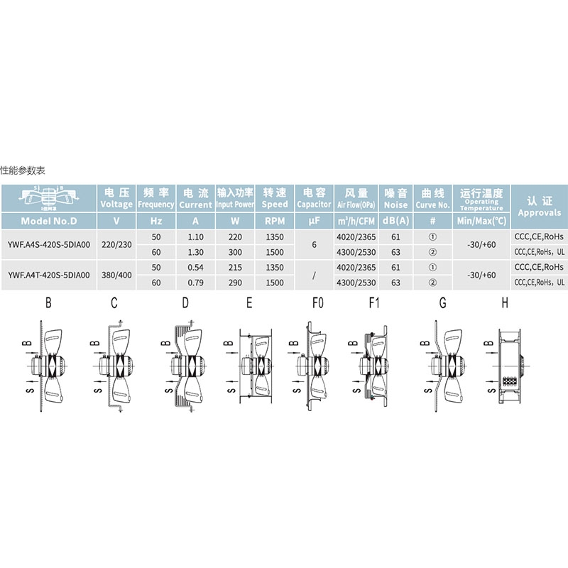 YWF.A4S-420S-5DIA00全新原裝三木馬爾微光外轉子風機