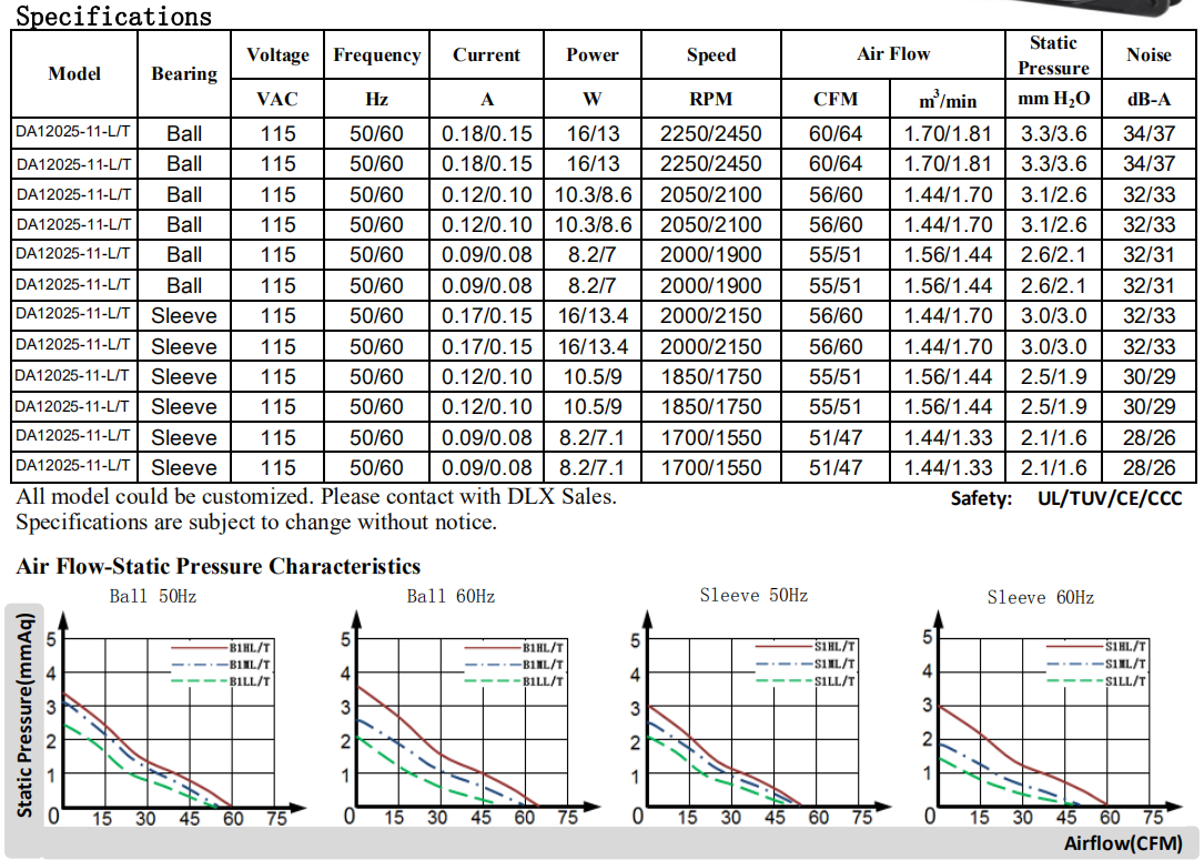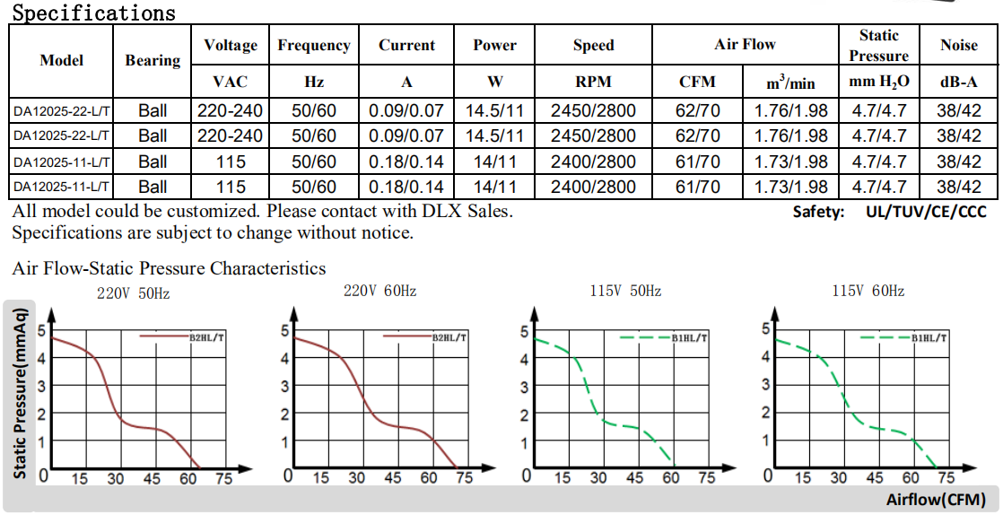 • 110 x110 x 25mm DA11025 110/220V